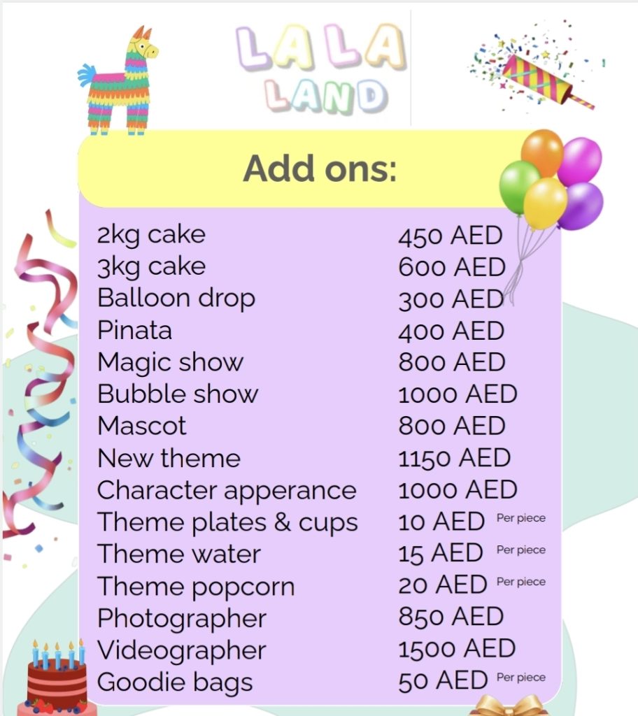 Birthdays are wonderful milestones and a day to celebrate and make memories. That is why at LA LA Land we make sure each birthday party celebrated with us is filled with utmost fun and joy. We will do all the work for you, so you can enjoy the occasion with family and friends.